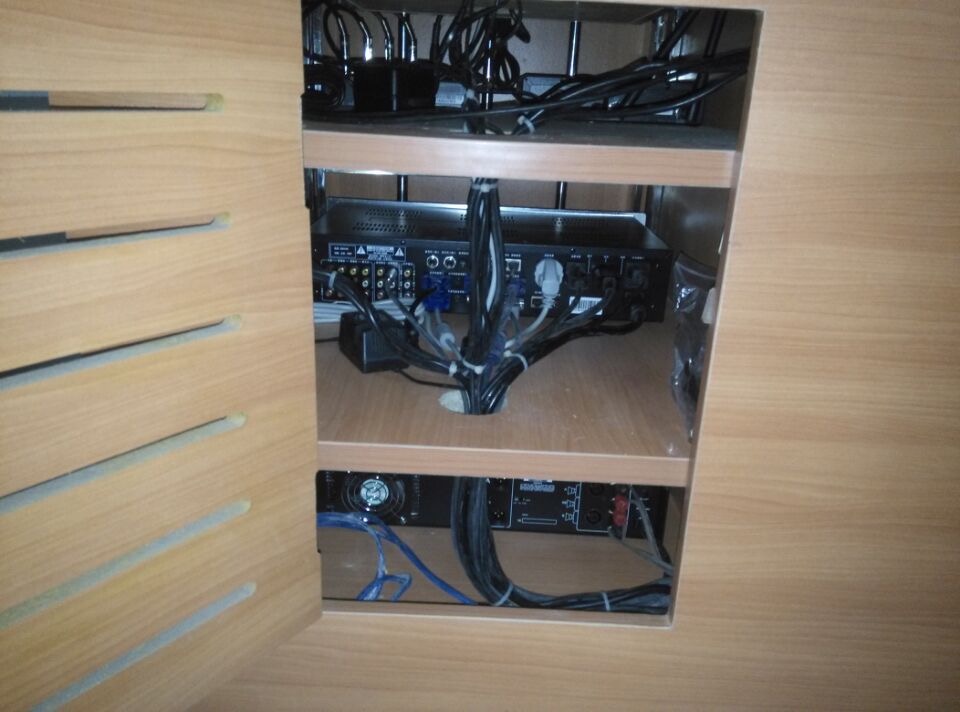 本項(xiàng)目為中山大學(xué)文科樓會(huì)議室,由會(huì)議討論系統(tǒng)、投影系統(tǒng)、擴(kuò)音系統(tǒng)組成等。