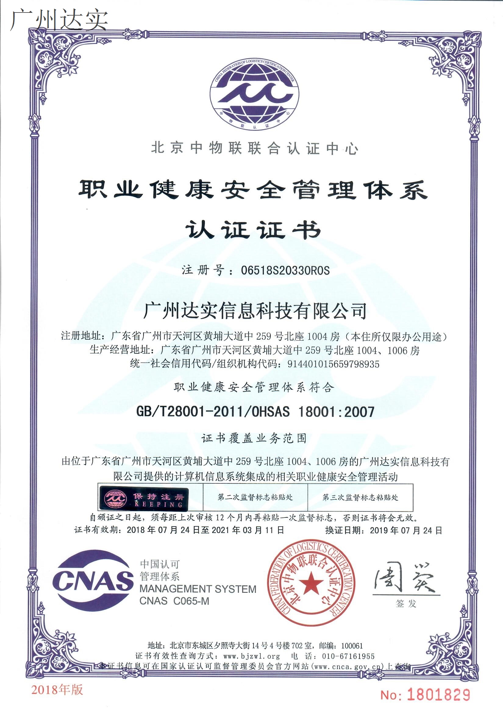 廣州達(dá)實信息科技有限公司-ISO管理體系認(rèn)證證書