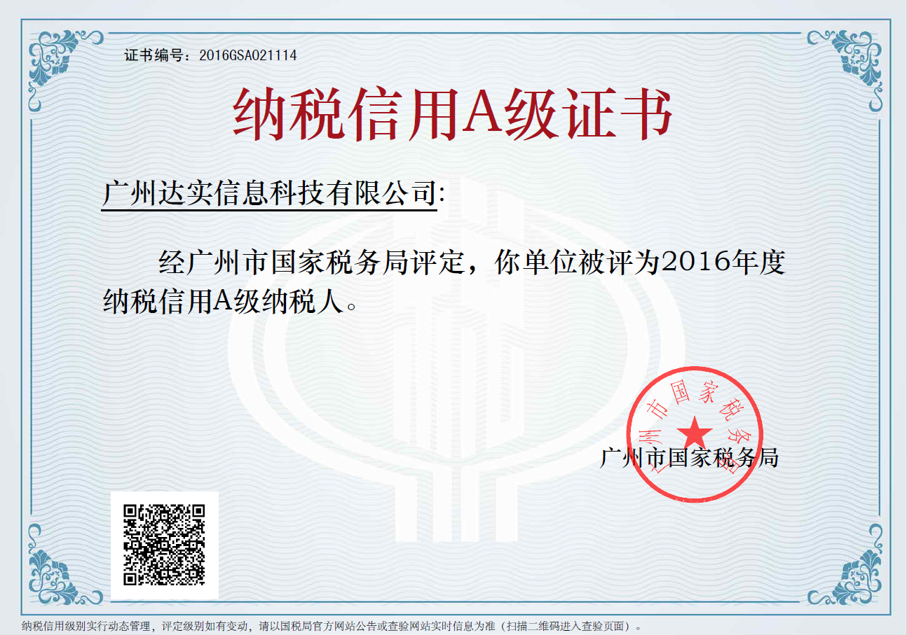 納稅信用A級(jí)證書