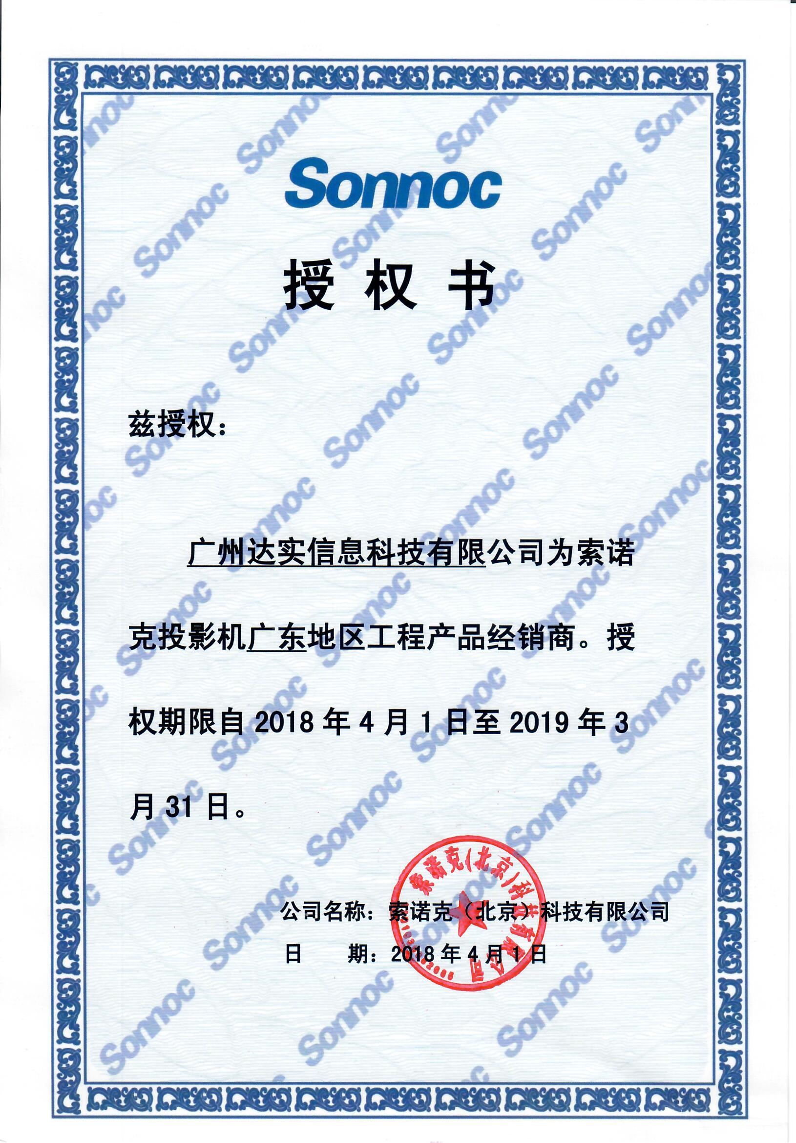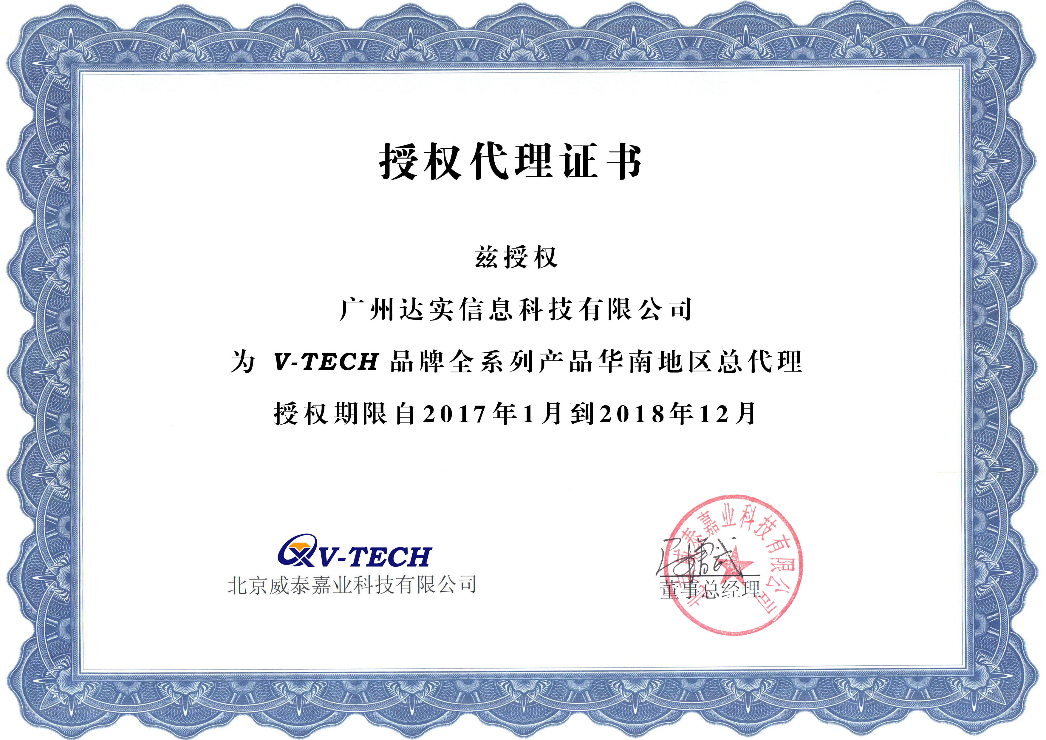 威泰授權(quán)證書