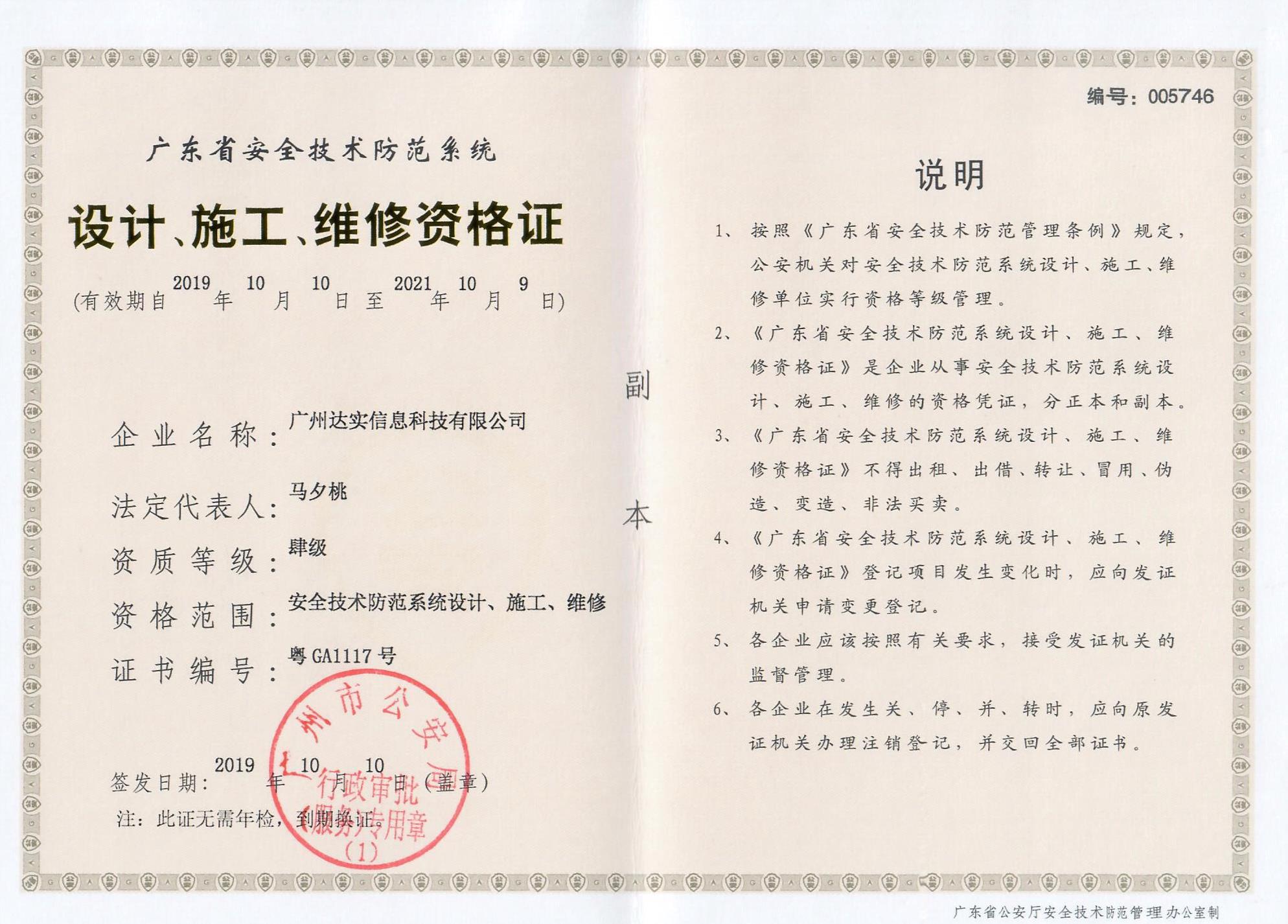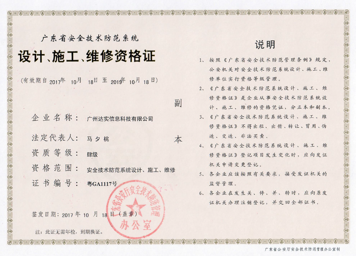 安防資質(zhì)認(rèn)證證書...
